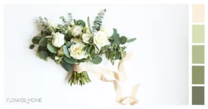 Our sample florals are made up of: White Roses, White Carnations, White Ranunculus, Cream Spray Roses, White Lisianthus, Gunni Eucalyptus, Baby Blue Eucalyptus, Silver Dollar Eucalyptus, and Leatherleaf Ferns.